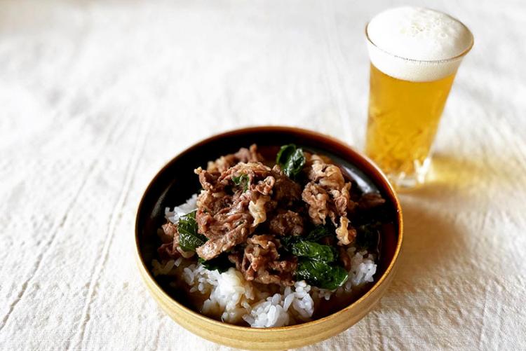 ご飯ものではありますが、このバター醤油や牛肉の味がしみたご飯はもはやおつまみ! よーく冷えたビールを添えて大正解でした。